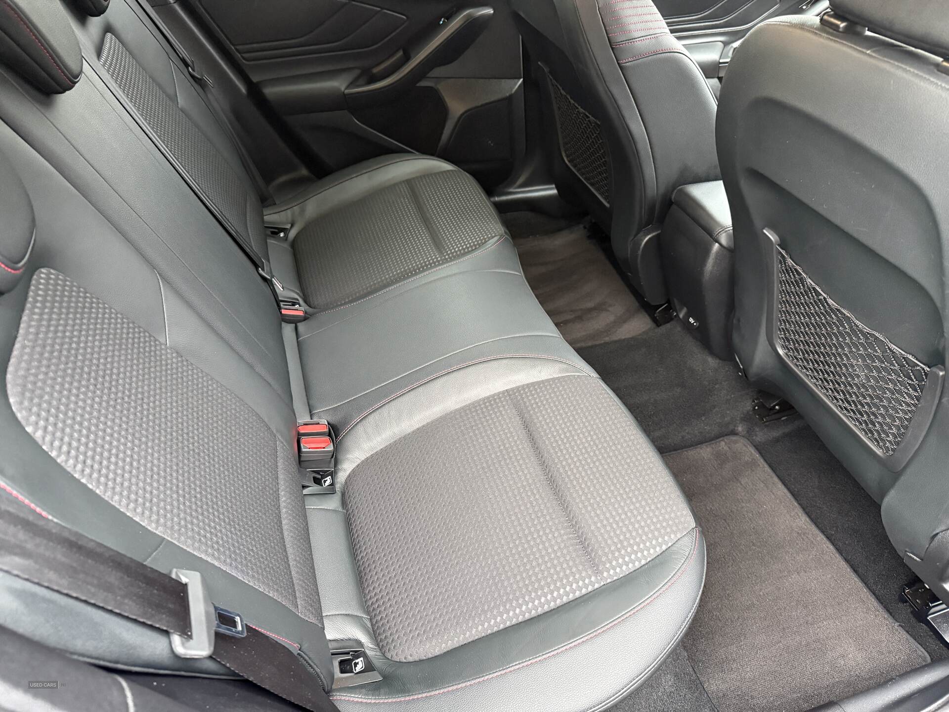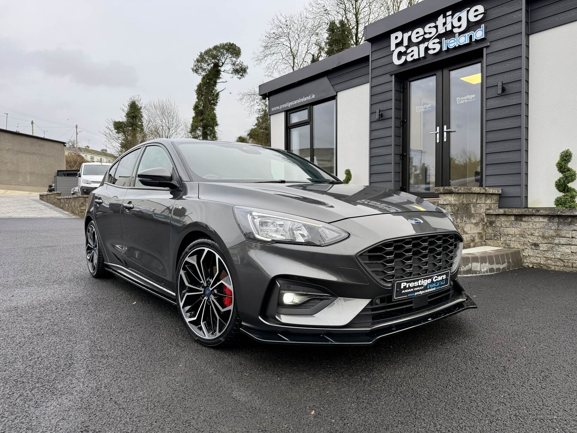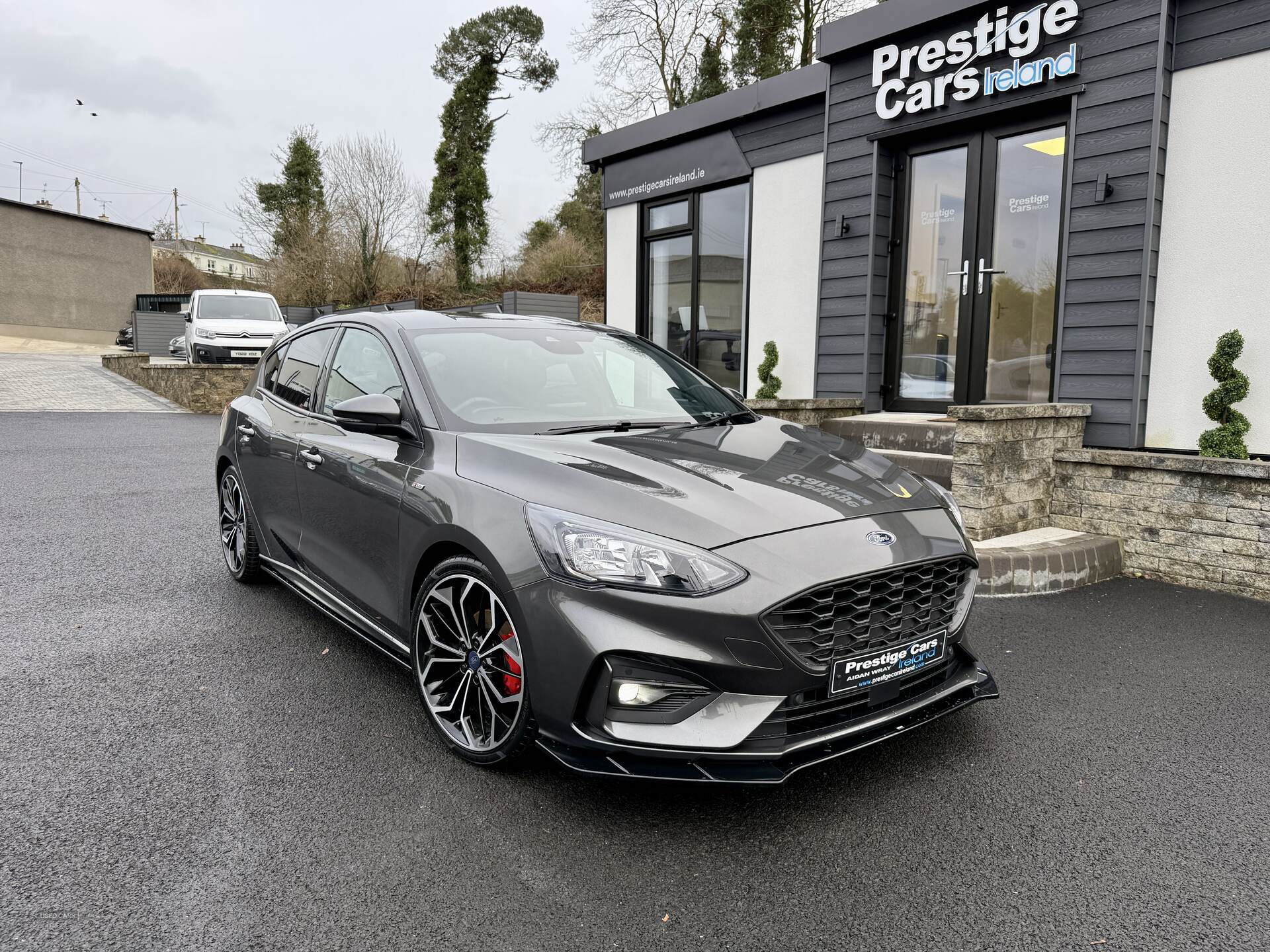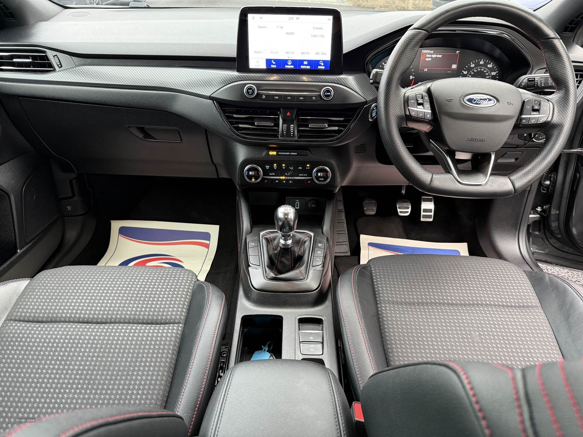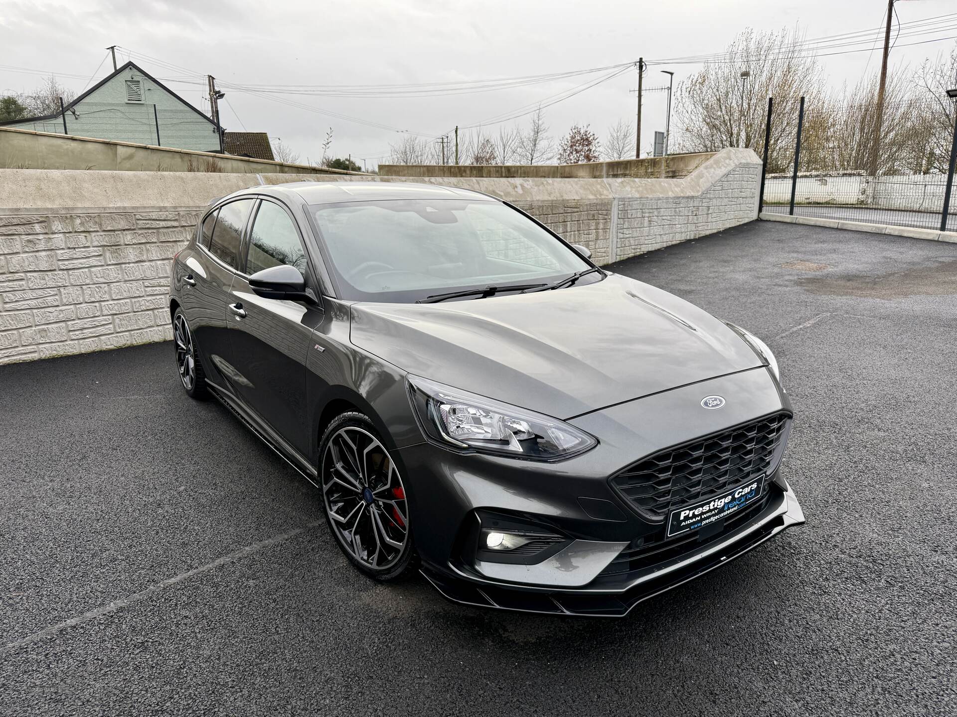 2020 (201) FORD FOCUS 1.5 TDCI ST LINE X ECO BLUE 120 BHP 5DR HATCHBACK, 100,000 MOTORWAY MILES WITH A FULL FORD MAIN DEALER SERVICE HISTORY, (WARRANTED MILES), 1 COMPANY OWNER FROM NEW, HALF BLACK LEATHER INTERIOR WITH RED STITCHING, HEATED SEATS, FORD SYNC 3 SAT-NAV SYSTEM WITH DAB RADIO, 8" COLOUR TOUCH SCREEN, VOICE CONTROL, APP LINK, APPLE CAR PLAY/ANDROID AUTO, ON-BOARD COMPUTER, MULTI FUNCTIONAL WHEEL, AIR CON, WIRELESS CHARGING PORT, IPOD/USB CONNECTIONS, BLUETOOTH, FACTORY REAR PRIVACY GLASS, BRAND NEW 19" ALLOY WHEEL PACKAGE,OPTIONAL EXTRA 750 STG, GLOSS BLACK STYLING KIT,FRONT SPLITTER,SIDE SKIRTS AND REAR SPOILER, PRE COLLISION ASSIST WITH EMERGENCY BRAKING, LANE DEPARTURE WARNING, FACTORY RED BRAKE CALIPERS, FRONT AND REAR PARK SENSORS, AMBIENT LIGHTING, HEATED WINDSCREEN, HEATED WASHER JETS AND HEATED REAR WINDOW, ELECTRIC FOLDING MIRRORS, AUTO LIGHTS, XENON/LED FRONT AND REAR LIGHTS, DAYTIME LED RUNNING LIGHTS, FRONT FOG LIGHTS WITH CORNERING FUNCTION, LANE DEPARTURE WARNING SYSTEM, FINISHED IN STUNNING MAGNETIC GREY, 6 SPEED MANUAL, 2 KEYS AVAILABLE AND ALL PAPERWORK PRESENT, MINT CONDITION INSIDE AND OUT. ANY INSPECTION WELCOME. DRIVING LIKE NEW